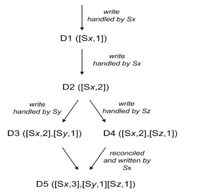 If the versions cannot be syntactically reconciled based on vector clocks alone, they have to be passed to the business logic for semantic reconciliation.