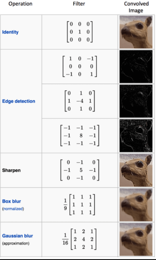 我们可以根据目的(边缘检测、锐化、模糊化等)的不同,选用不同的 filter,得到的效果如下 [8],