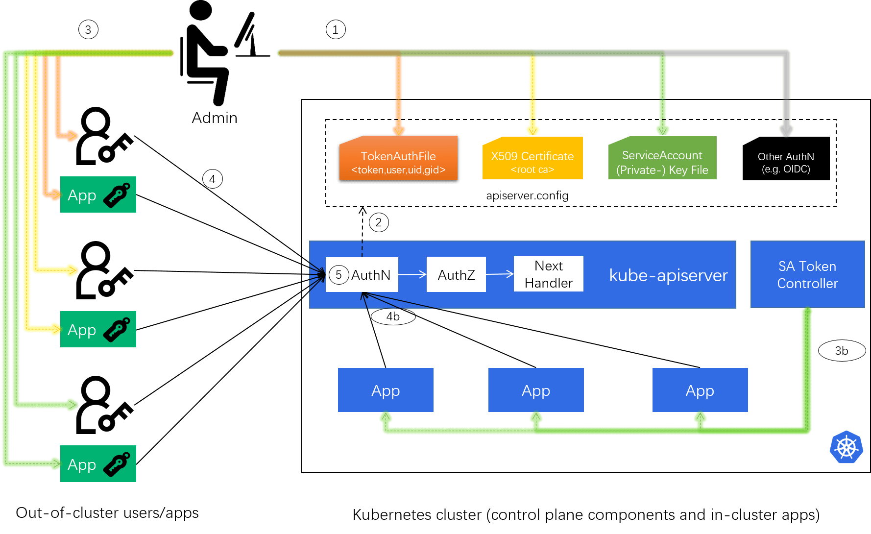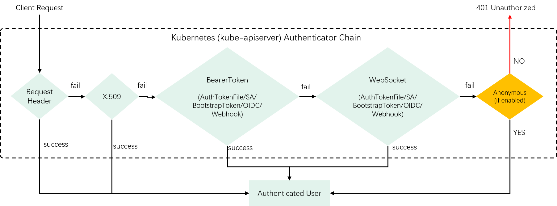 AuthN and AuthZ are tightly related, refer to our later post Cracking Kubernetes RABC Authorization Model for the AuthZ part.