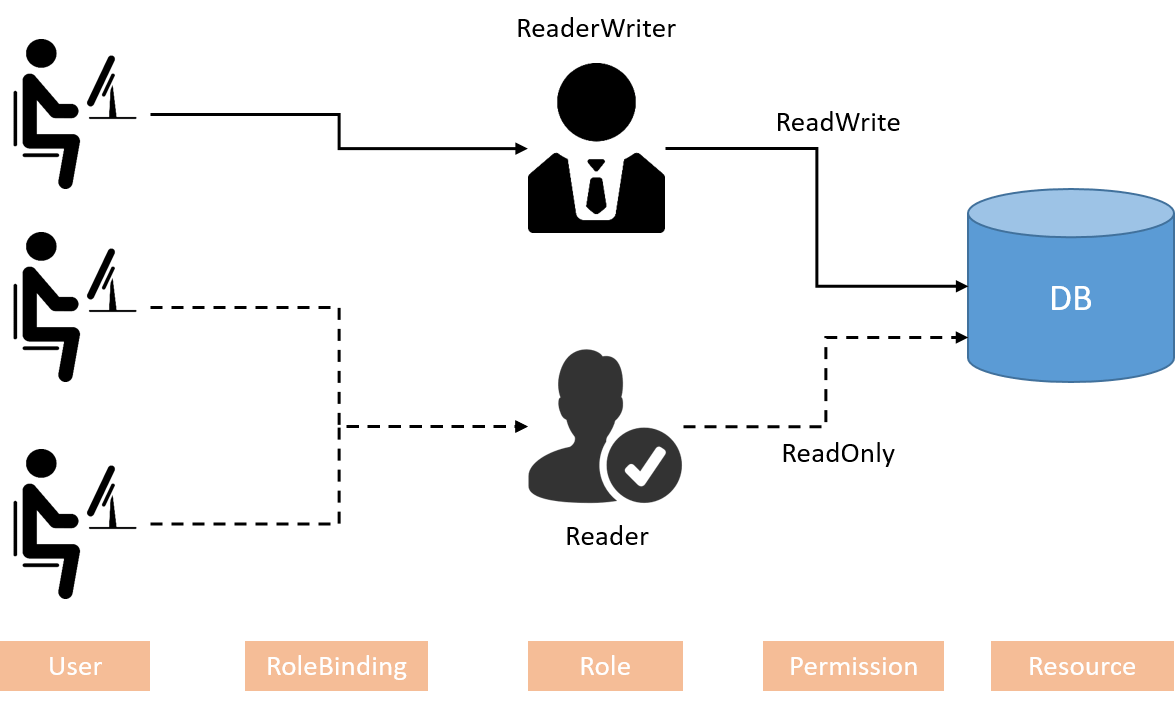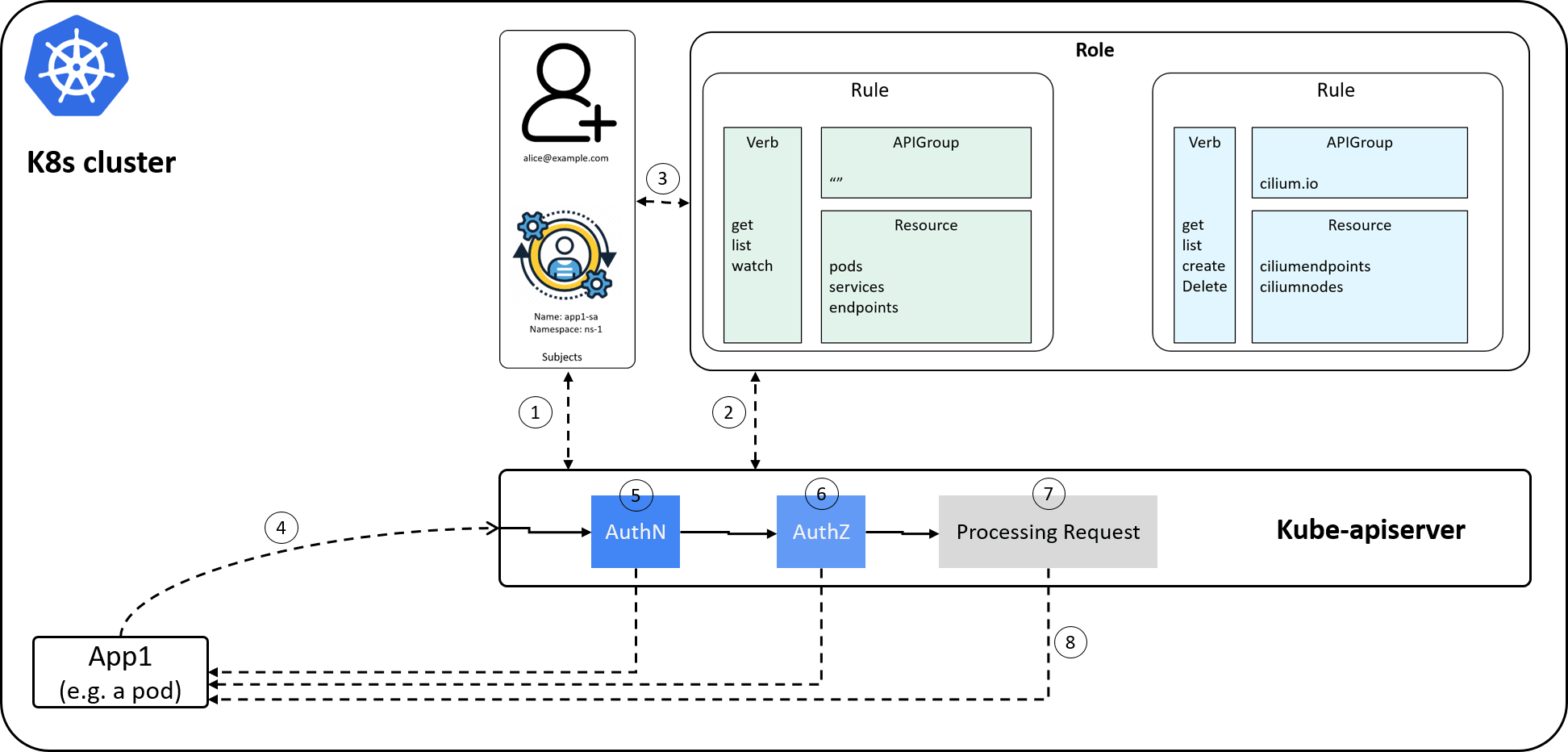 K8s implements a RBAC model (as welll as several other models) for protecting resources in the cluster. In more plain words, it manages the permissions to kube-apiserver’s API. With properly configured RBAC policies, we can control which user (human or programs) can access which resource (pods/services/endpoints/…) with which operation (get/list/delete/…).