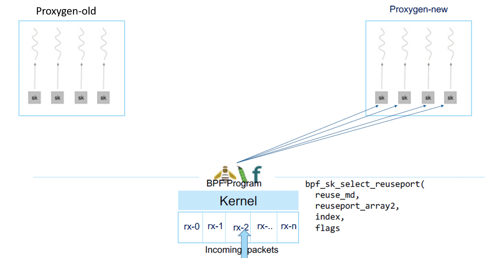- BPF 程序可以获取包的 TCP Header,然后往其中写入路由信息(这里是 server_id),或者从中读取路由信息