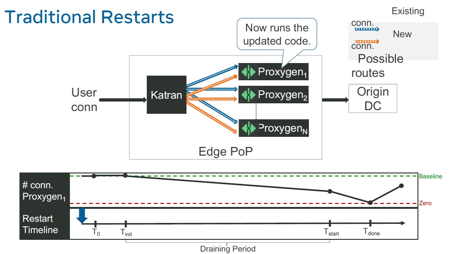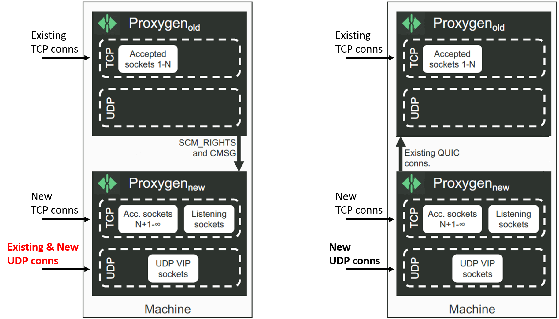 本节介绍了我们的基于 BPF_PROG_TYPE_SK_REUSEPORT 和 BPF_MAP_TYPE_REUSEPORT_SOCKARRAY 实现的新一代发布技术,它能实现主机内新老实例流量的无损切换,优点: