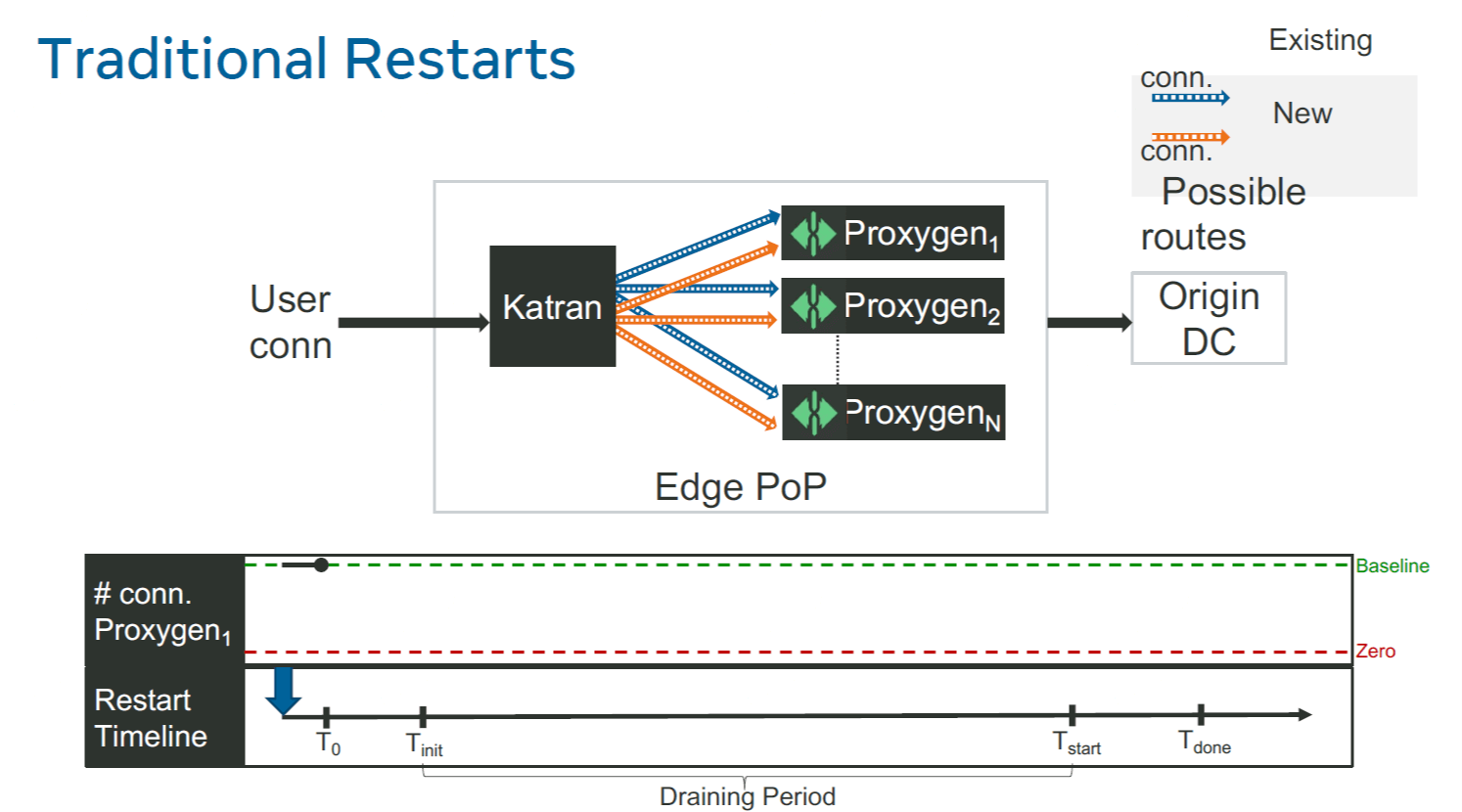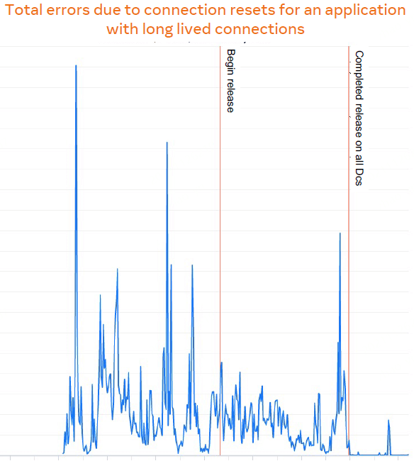 以上分析可以看出,“持续发布” L4 和 L7 服务会导致连接不稳定,降低整体可靠性。 除了发布之外,我们随时都有大量服务器要维护,因此哈希 ring 发生变化(一致性哈希 发生扰动)是日常而非例外。任何时候发生 ECMP shuffle 和服务发布/主机维护,都会导 致一部分 active 连接受损,虽然量很小,但会降低整体的可靠性指标。