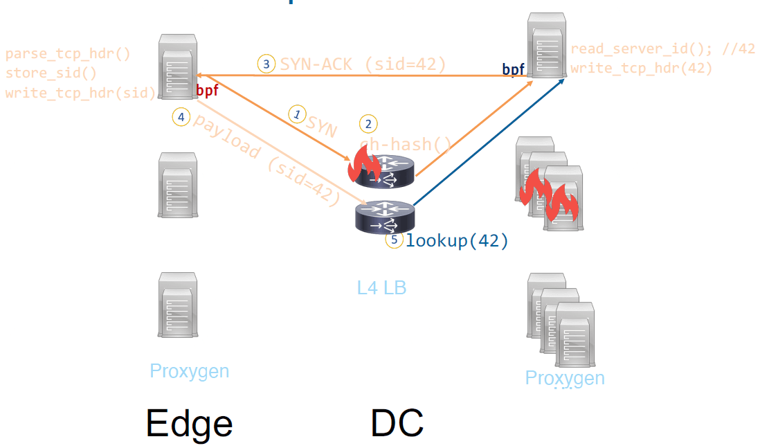 这样整条链路上都可以从包中提取这个 id,无需任何哈希或 cache 查找,最终实现的是一个 完全无状态的四层路由(completely stateless routing in L4)。