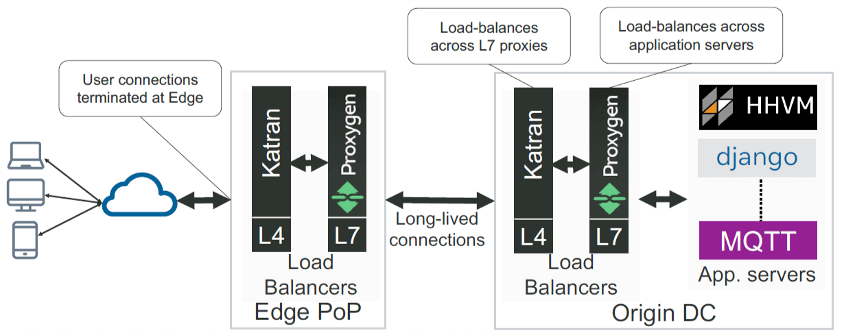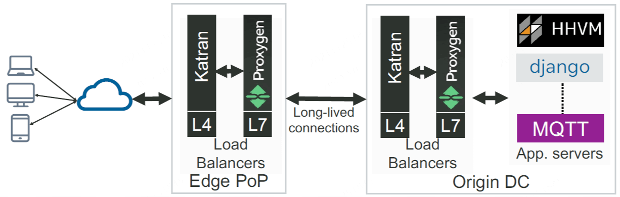 - Origin DC LB 再将 L7 流量路由到最终的应用,例如 HHVM 服务。