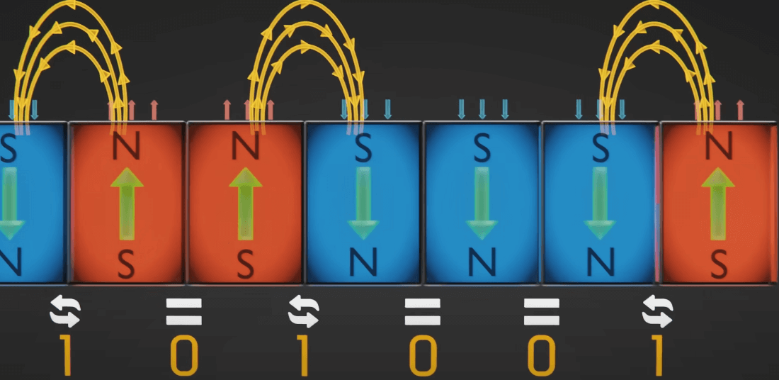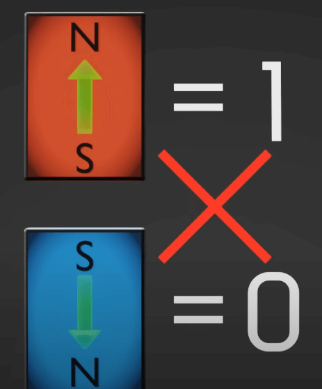 前面我们假设了不同南北极的磁块分别表示 0 和 1,