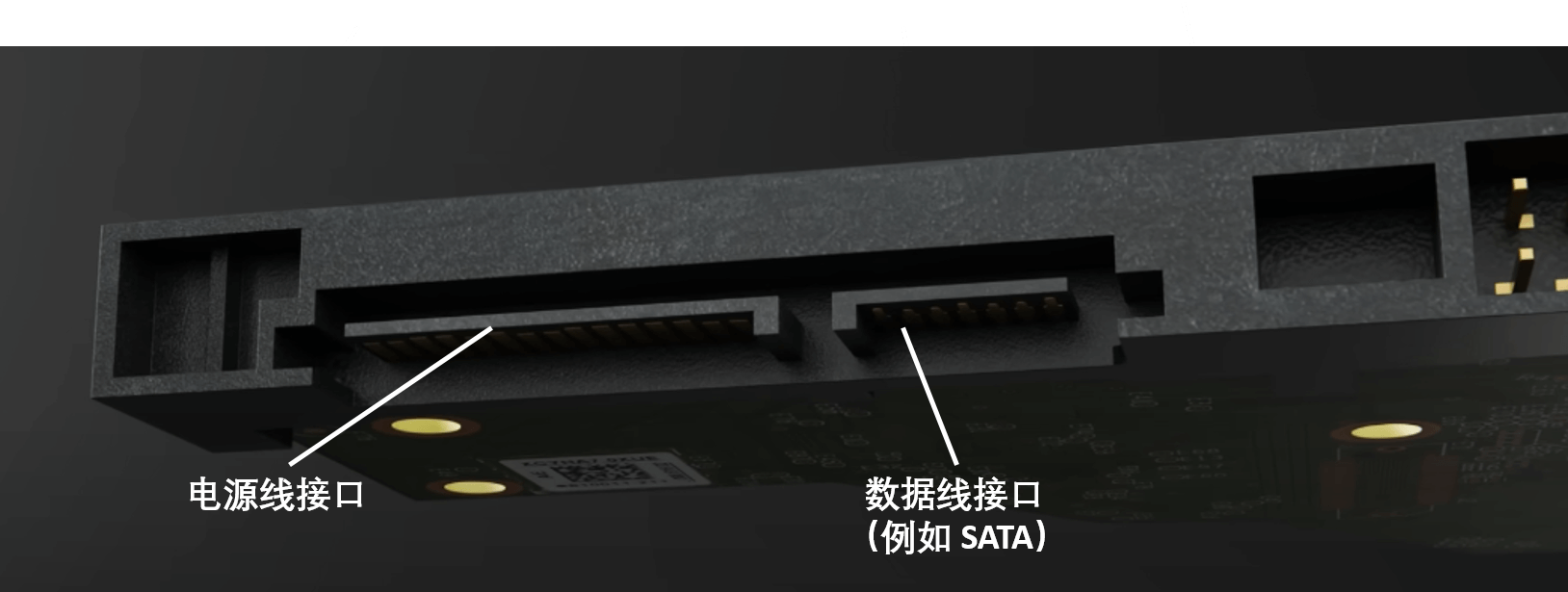 • 数据接口:例如 SATA 接口,用于和电脑主板相连传输数据;