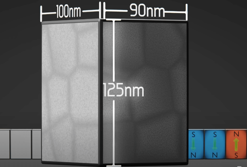 每个磁盘微块大小约为 90nm x 100nm x 125nm