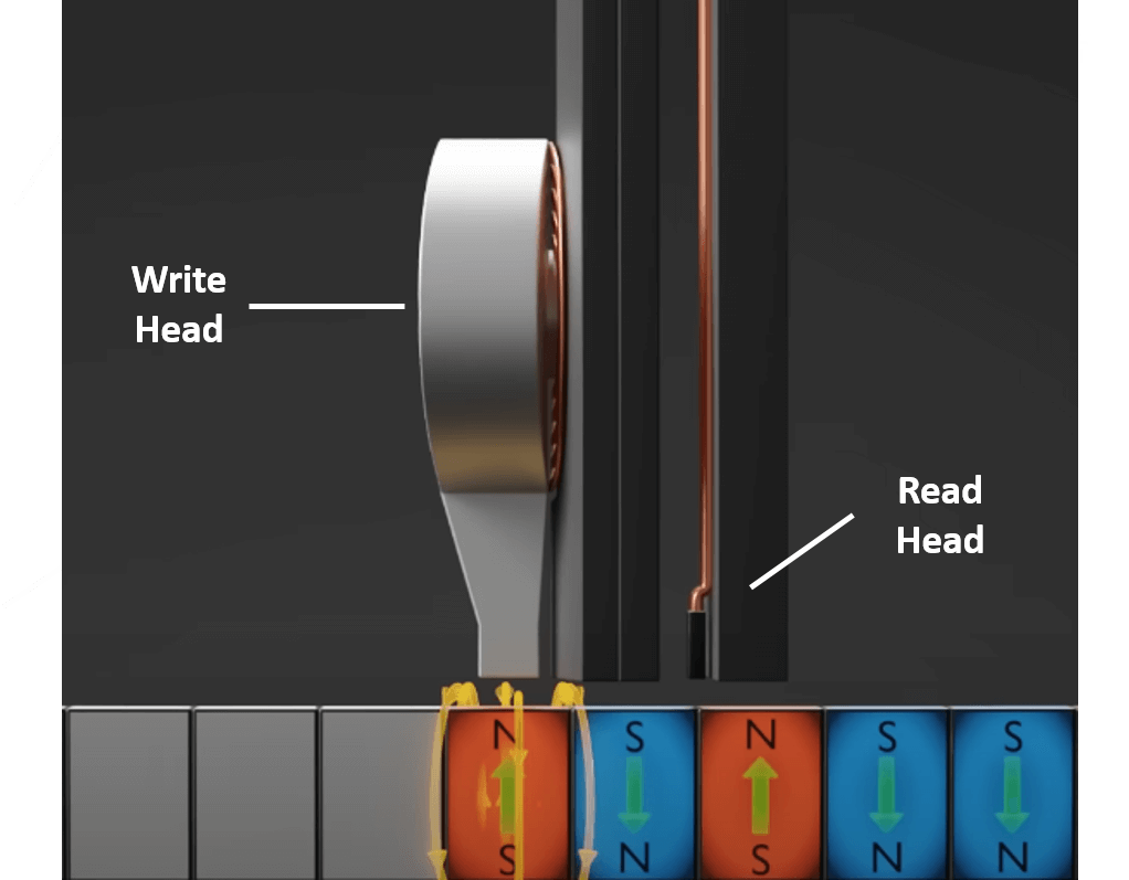 现在让我们进一步看看读/写磁头的内部机制,以及写头(write head)是是如何写数据的。