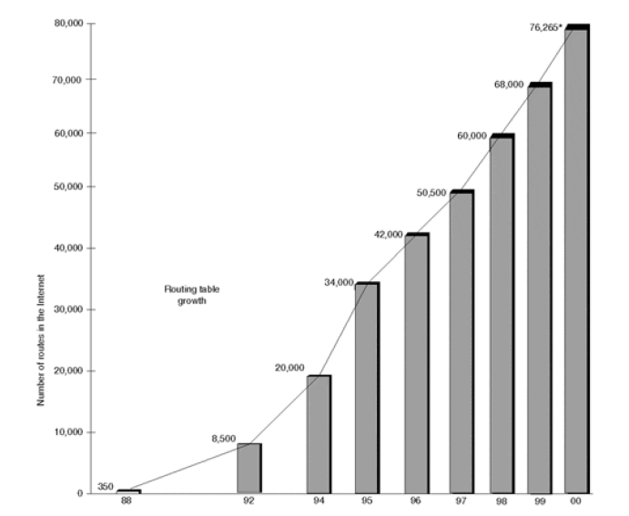 图 3-9 The Growth of Internet Routing Tables