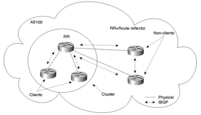 RR 拓扑主要取决于物理网络拓扑,事实上每个路由器都可以配置成 RR。