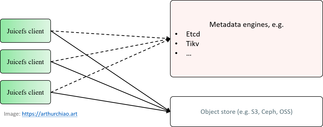 Fig. JuiceFS components and architecutre.