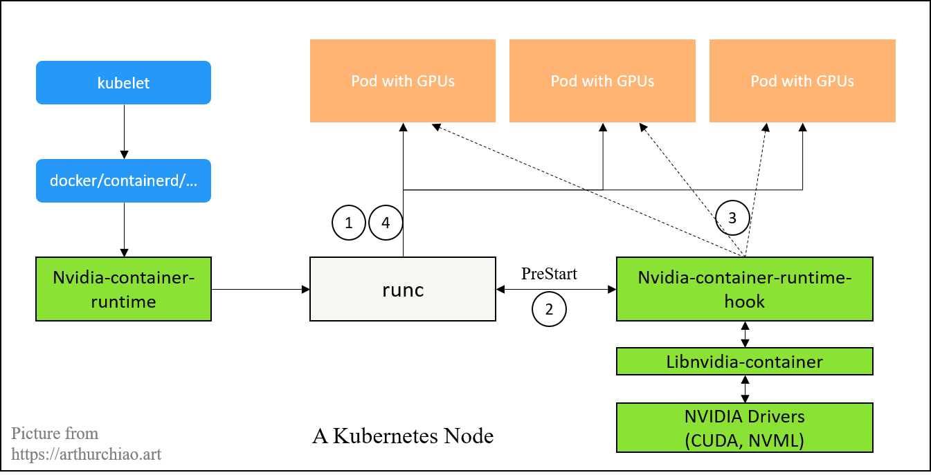 注册了 runc 的 PreStart hook,在这一步去修改容器的配置,例如挂载 GPU 相关设备。
