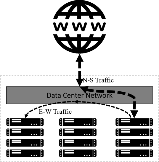 - 南北向流量(进出集群的流量)远大于东西向流量(集群内应用互访的的流量)。