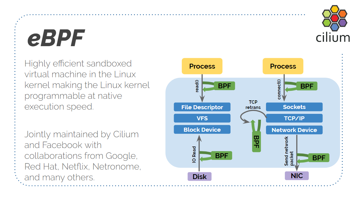最后是 eBPF,这是所需的最后一个重要组件。eBPF 是一项令人振奋的新技术,今年以来我 们已经看到了大量基于 eBPF 的新项目。