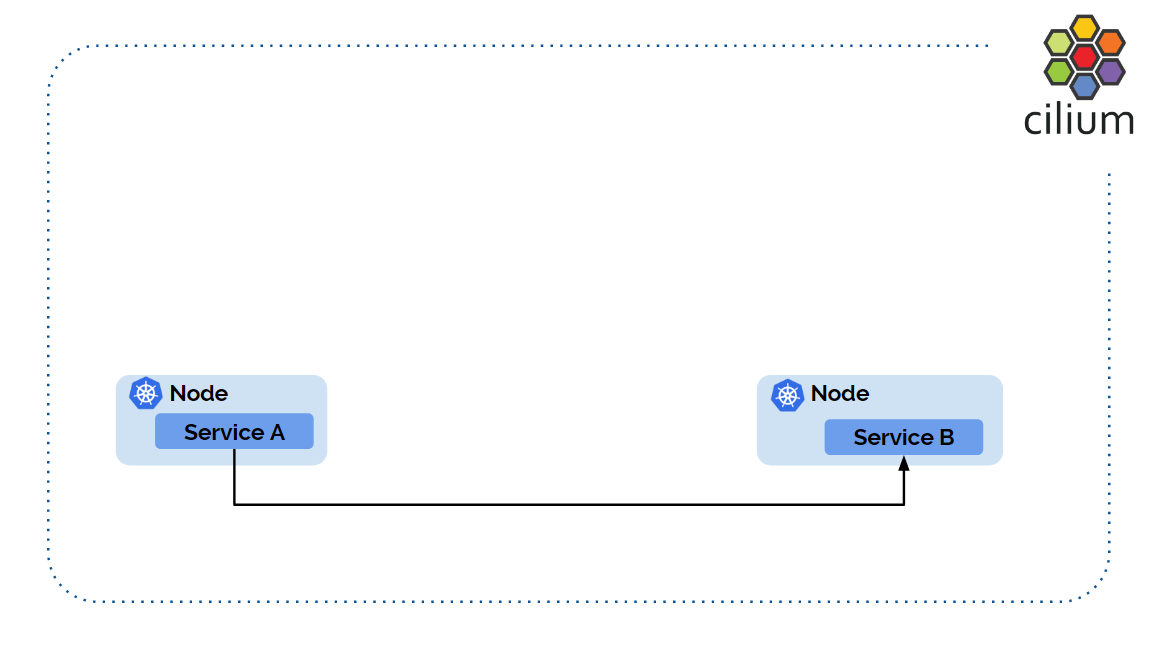很简单的例子。两个服务 A 和 B,假设运行在不同 node 上(也可以运行在相同 node 上 )。