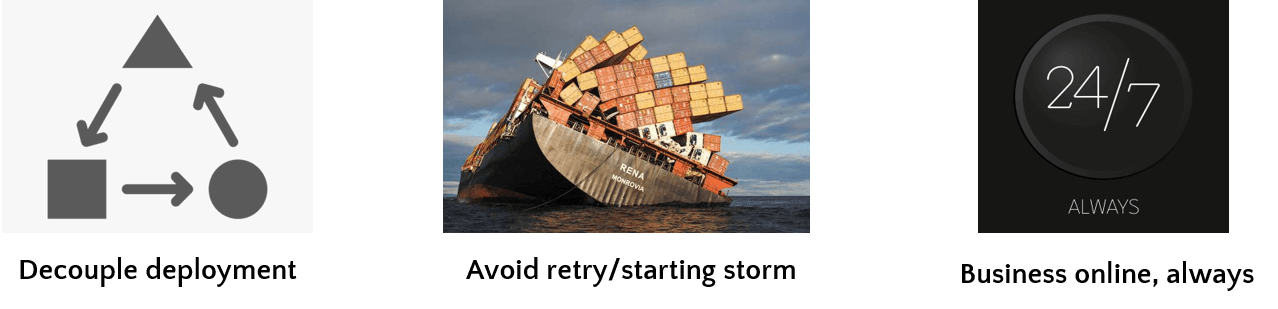 The second consideration is to avoid retry storms and burst starting, as requests will surge by two orders of magnitude or even higher when outage occurs, which could easily crash or stuck central components like Kubernetes apiserver/etcd and kvstore.