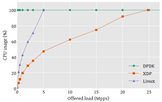 甚至还有人尝试将 XDP 作为 DPDK 的一种底层驱动 [53]。
